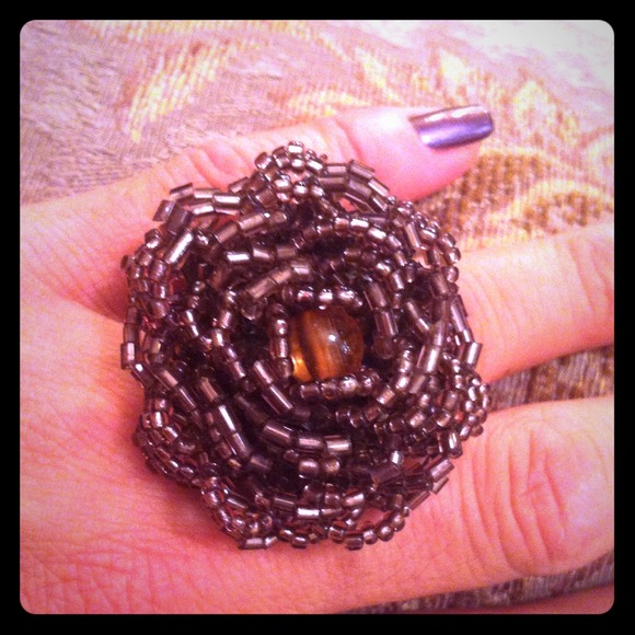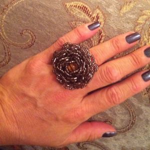 STATEMENT FLOWER RING!!! Elastic band, so fits any size & any finger on your hand!! Gorgeous brownish beads, a definite statement piece!!!
