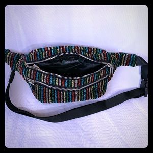 Colorful and glittery Fanny pack! (Adjustable sizing) Holds great storage for size due to stretchy material without the bulky look! Also, includes smaller front pocket; Like New!