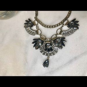 Fun and beautiful statement necklace. The darker stones add a fun edge to any look! The gold chain had a varnished look to it to give it a vintage look. Length can be adjusted.