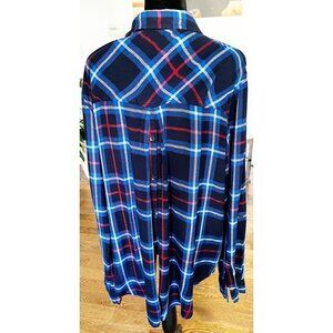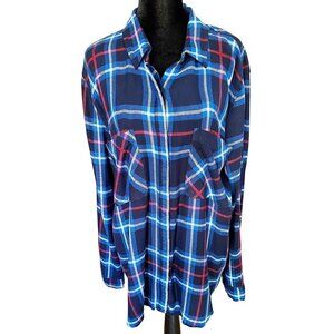 STATEMENT Women's Plaid Flannel Split Back Long Sleeve Shirt sz(2XL)