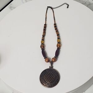 STATEMENT NECKLACE Copper Pendant Beaded Jewelry