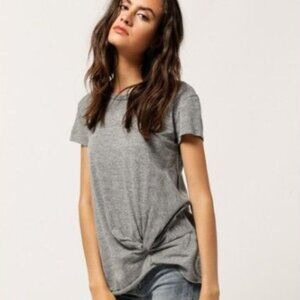 STATESIDE I Heather Gray Cap Short Sleeve Crew Neck Top with Faux Side Knot, XS