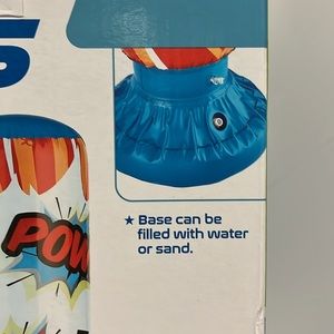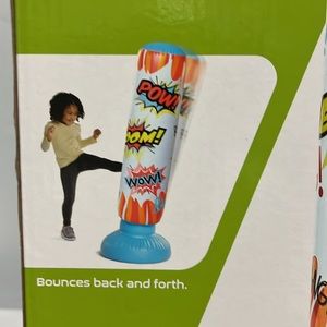 A STATS Inflatable Boxing Bag is a tall, freestanding, air-filled punching bag, designed for children's recreational use. It's usually made of durable, lightweight material, often featuring bright colors or patterns, and has a weighted base to bounce back after being hit.