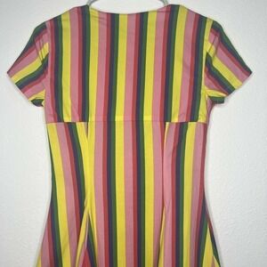 STAUD Alice Pink Colorful Rainbow Striped Poplin V-Neck Tie-Front Dress Sz 2