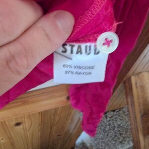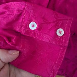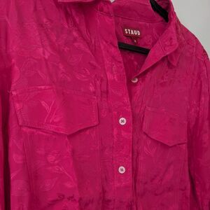 STAUD Alyssa Damask Tonal Floral Pocket Front Button Down Shirt Hot Pink Size M