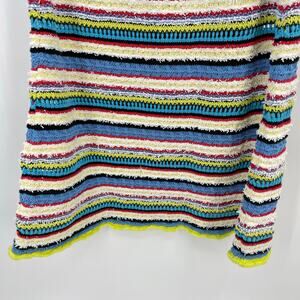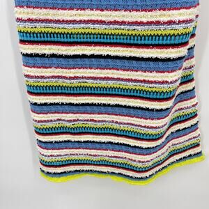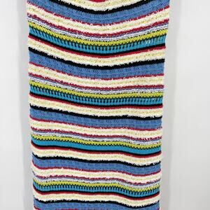 STAUD | Annabella Crochet Knit Striped Halterneck Maxi Dress in Pacific Reef S
