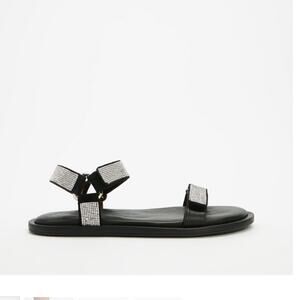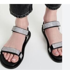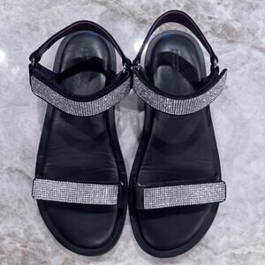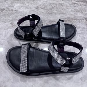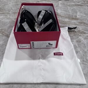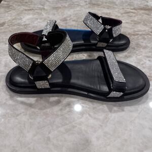 STAUD Black Flat rhinestone Sandals with Velcro closures size 39