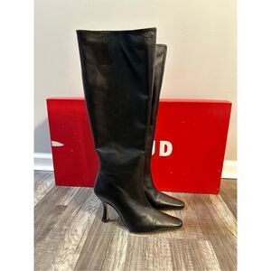 Elegant black heeled boots. Sleek design. Perfect for any occasion.
