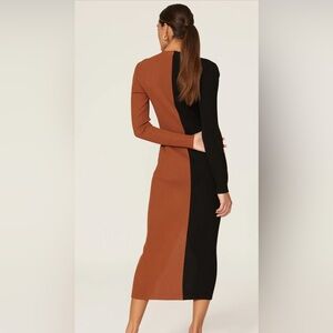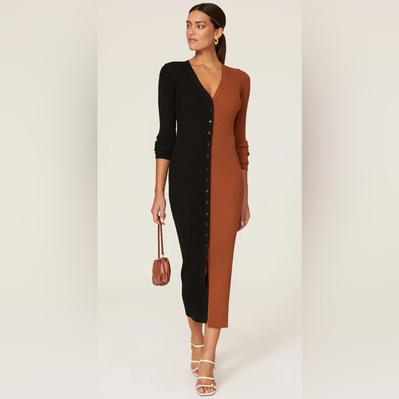 STAUD two toned sweater dress with buttons down the front. Extremely stretchy ribbed material. The easiest throw on and go dress with an edge to it. Never worn, no tags