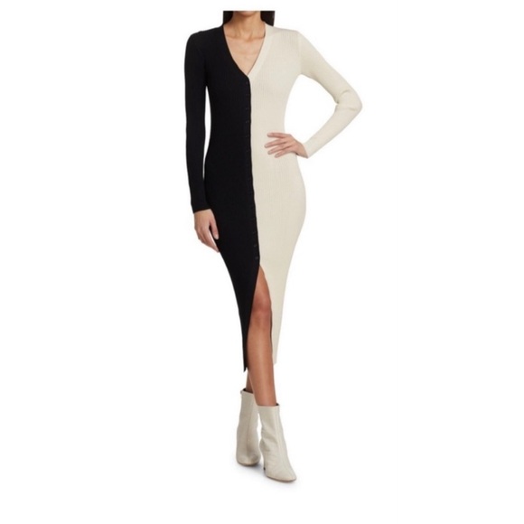 STAUD Black and Cream Long Sleeve Dress Shoko