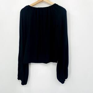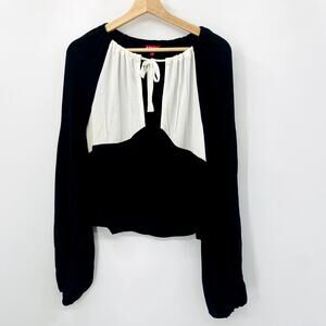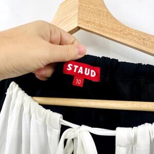 STAUD Black & white Astoria Tie Front Long sleeve blouse