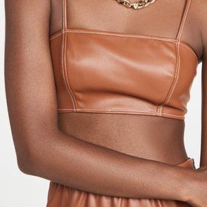 STAUD Bomber Vegan Leather Bralette Top in Whiskey