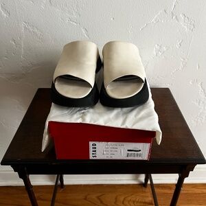 STAUD Alpine Leather Flatform Sliders, Size 9