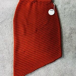 STAUD Cantilever Asymmetric Midi-Skirt (Cinnamon)