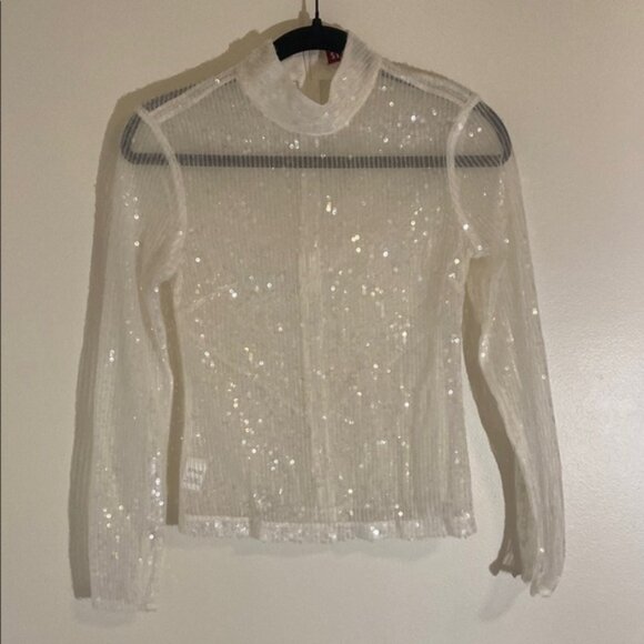 Shine in this elegant white sequin top, perfect for any occasion. The shimmering design adds a touch of glamour to your wardrobe.