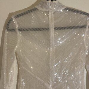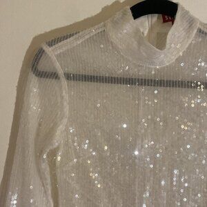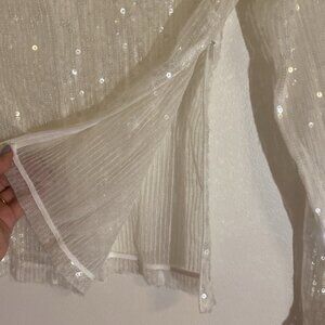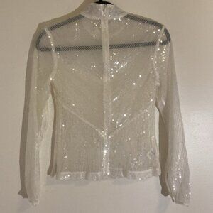STAUD Chaka Sequined Long Sleeve White Blouse Sz XS
