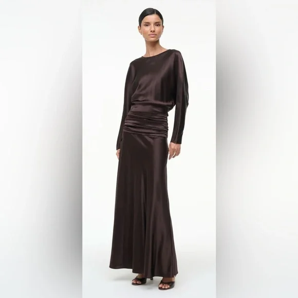 STAUD Chocolate Satin Dress