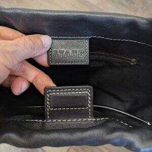 STAUD Cinch Leather Bucket Bag in Black LIKE NEW