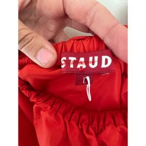 STAUD Colby Nylon Off The Shoulder Bow Accent Billowy Balloon Sleeves Top Large