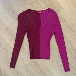 Burgundy and pink color block ribbed cardigan. In excellent condition!