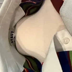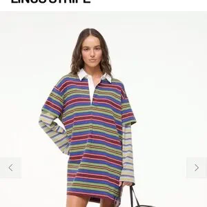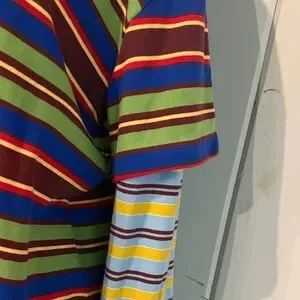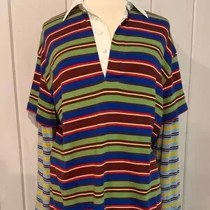 Bold stripes with a relaxed fit. Features a white collar. Ideal for everyday wear.