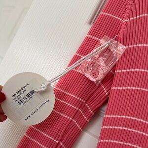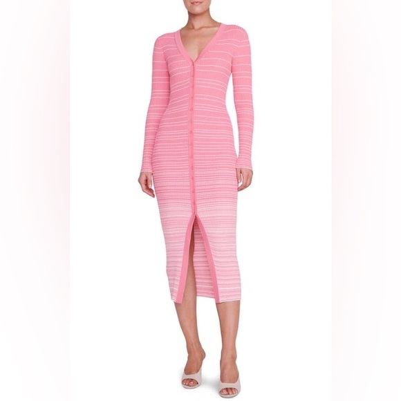 STAUD Coral Pink/White Shoko Ribbed Midi Dress - Small