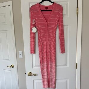 NWT!! Elegant pink long sleeve midi dress perfect for any occasion. Features a stylish button-down front and a flattering fit.