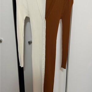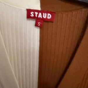 STAUD Cream and Brown Ribbed Long sleeve Cardigan Dress - Size small