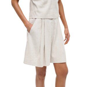 STAUD Cruz Linen Pleated Bermuda Shorts Womens 8 Natural Tan High Rise Beige
