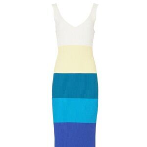 Bold colorblock stripes mimic a beach sunset in this chic cocktail dress by Staud.