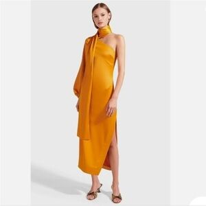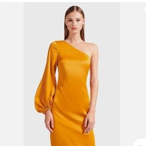STAUD Farrah one shoulder golden midi dress in Cumin