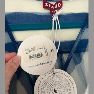 STAUD Flippa Blue & White Stripe Organza Wrap Midi Dress NWT