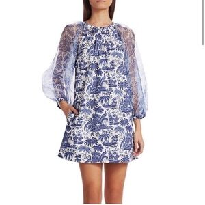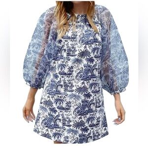 STAUD Garden Balloon Sleeve Shift Dress In China Blue Toile