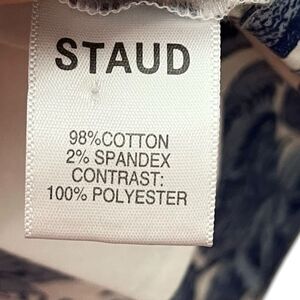 STAUD Garden Shift Dress Blue Toile Chinoiserie Women’s Size Small Sheer Sleeve