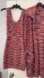Vibrant mini dress with a textured pattern. Features a mix of pink, purple, and orange hues. Perfect for a bold statement look.