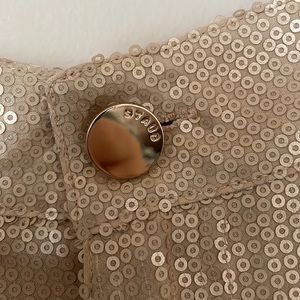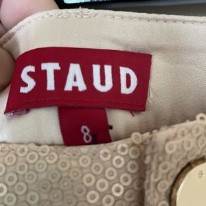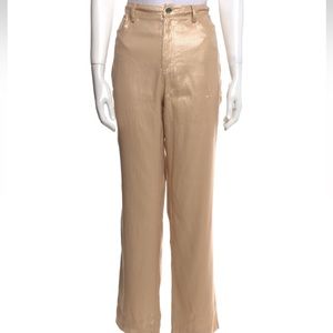 STAUD Gold Sequin Cream Straight Leg Trousers