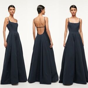 STAUD Joli Open-Back Full Skirt Maxi Dress Gown Navy Blue NWT Size 4