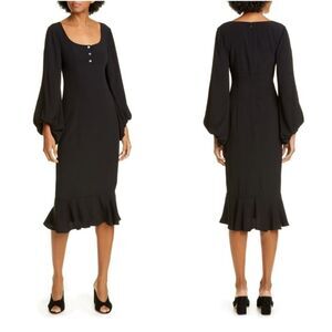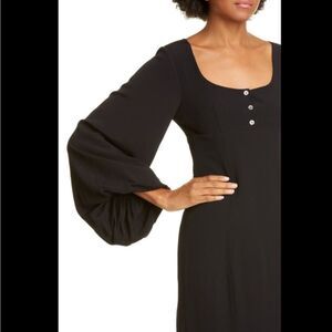 STAUD Lara Balloon Sleeve Midi Dress Black Size 8