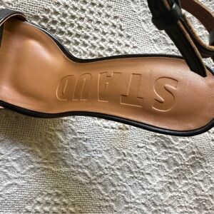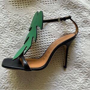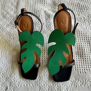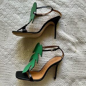 STAUD leather heels, sandals with leaf detailing on it. Condition is great