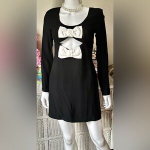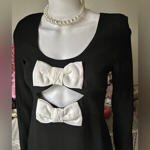 STAUD Lido Crepe Cutout Mini Dress with Bows in Black & White Size 4