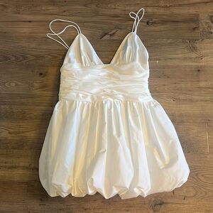 STAUD Loren Ruched Taffeta Mini Dress - White