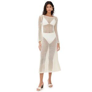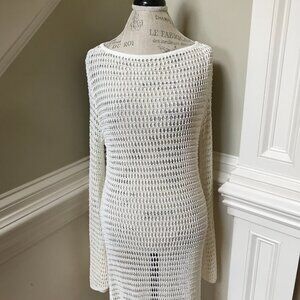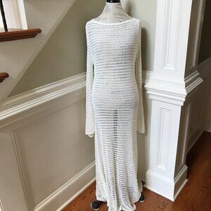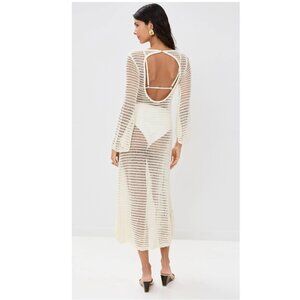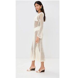 STAUD Lorena Crochet Cover Up Maxi Dress Womens Large Ivory Cream Open Back Mesh