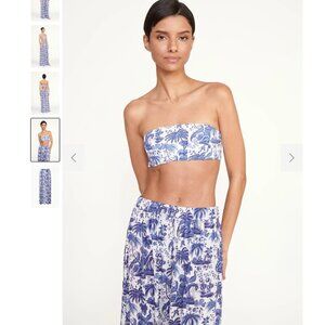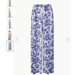 staud Elegant wide-leg pants with a tropical blue and white pattern. Lightweight and flowy fabric. Perfect for casual or beach outings.