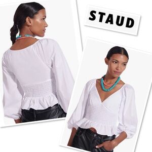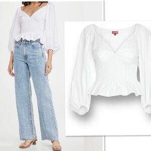 STAUD Matilde Puff Sleeve Cotton Poplin Long Sleeve Smoked Top - White Size XL