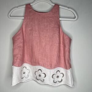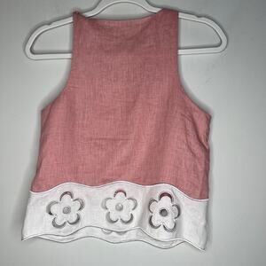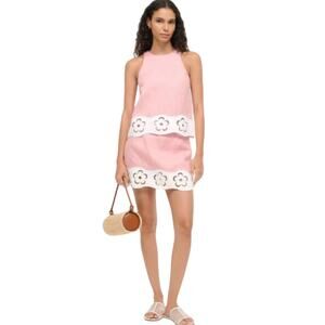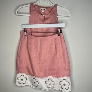 STAUD Mika Pink Linen Floral Cut Out Top & Skirt Matching Set Size XS/2