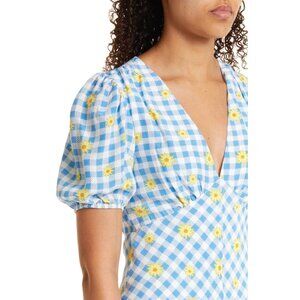 STAUD Milla Print Minidress In Gingham Daisy Plaid Size 4