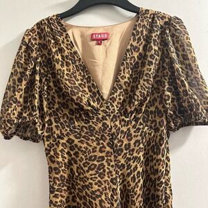 🔴STAUD Milla Puff Sleeve Dress In Leopard