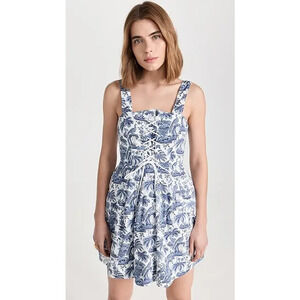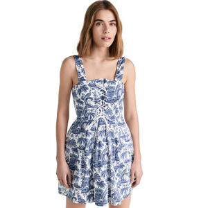 STAUD Mini Sutton Dress Boned Lace-Up Printed Fairy Balletcore Blue Size 10
