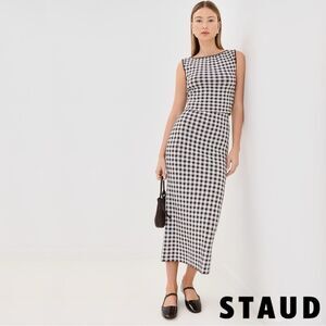 STAUD **NWT** Montgomery Cropped Knit Tank in Chocolate Brown Gingham