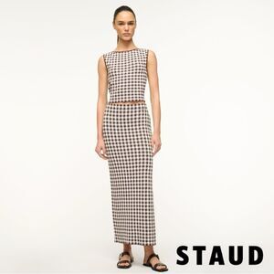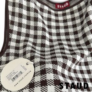 STAUD **NWT** Montgomery Cropped Knit Tank in Chocolate Brown Gingham